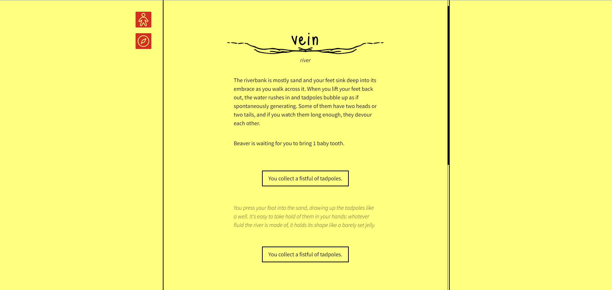 Many parts of the interface can be hovered over to receive more information or story. the overall narrative consists of nested thematic content: stories within stories within stories.