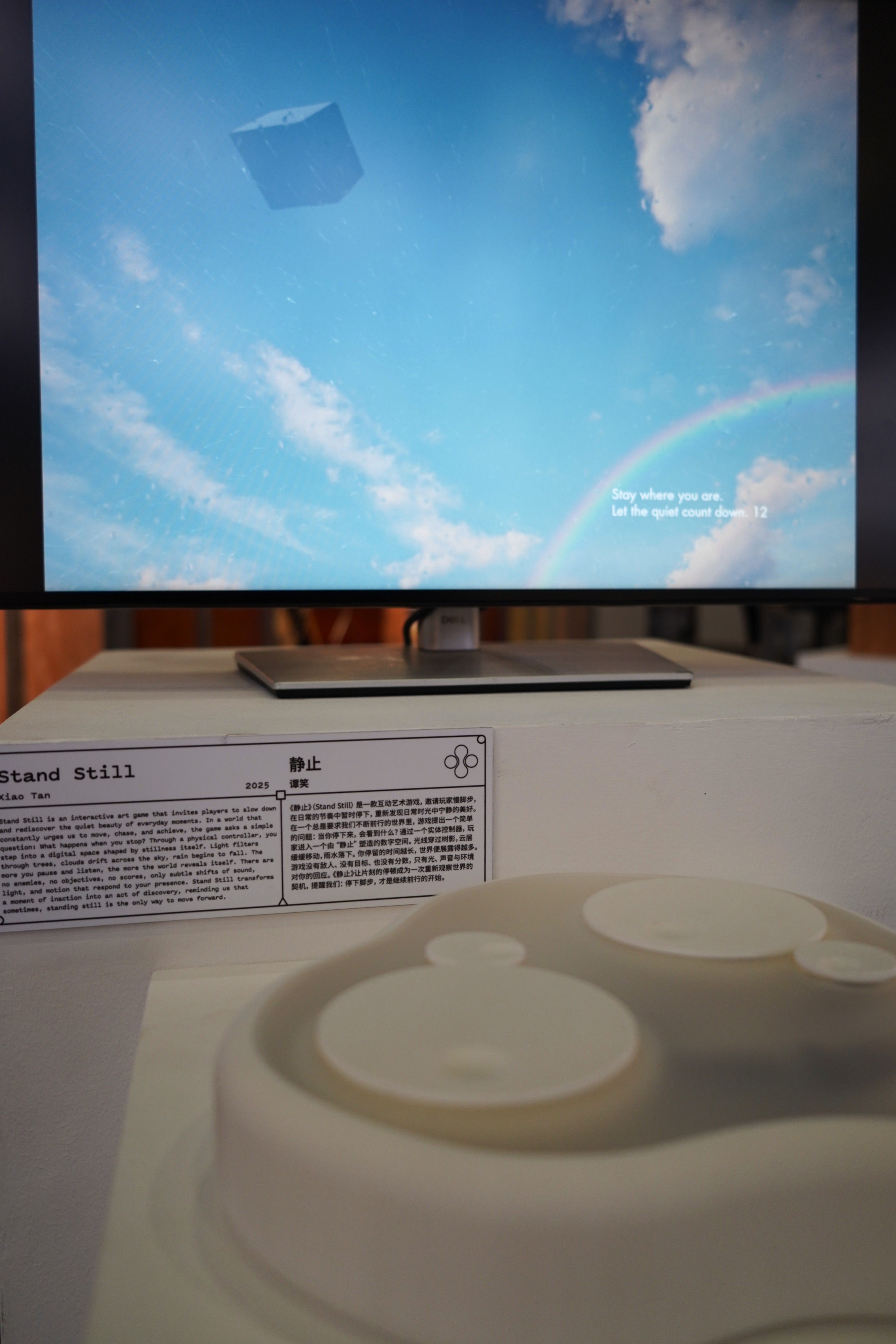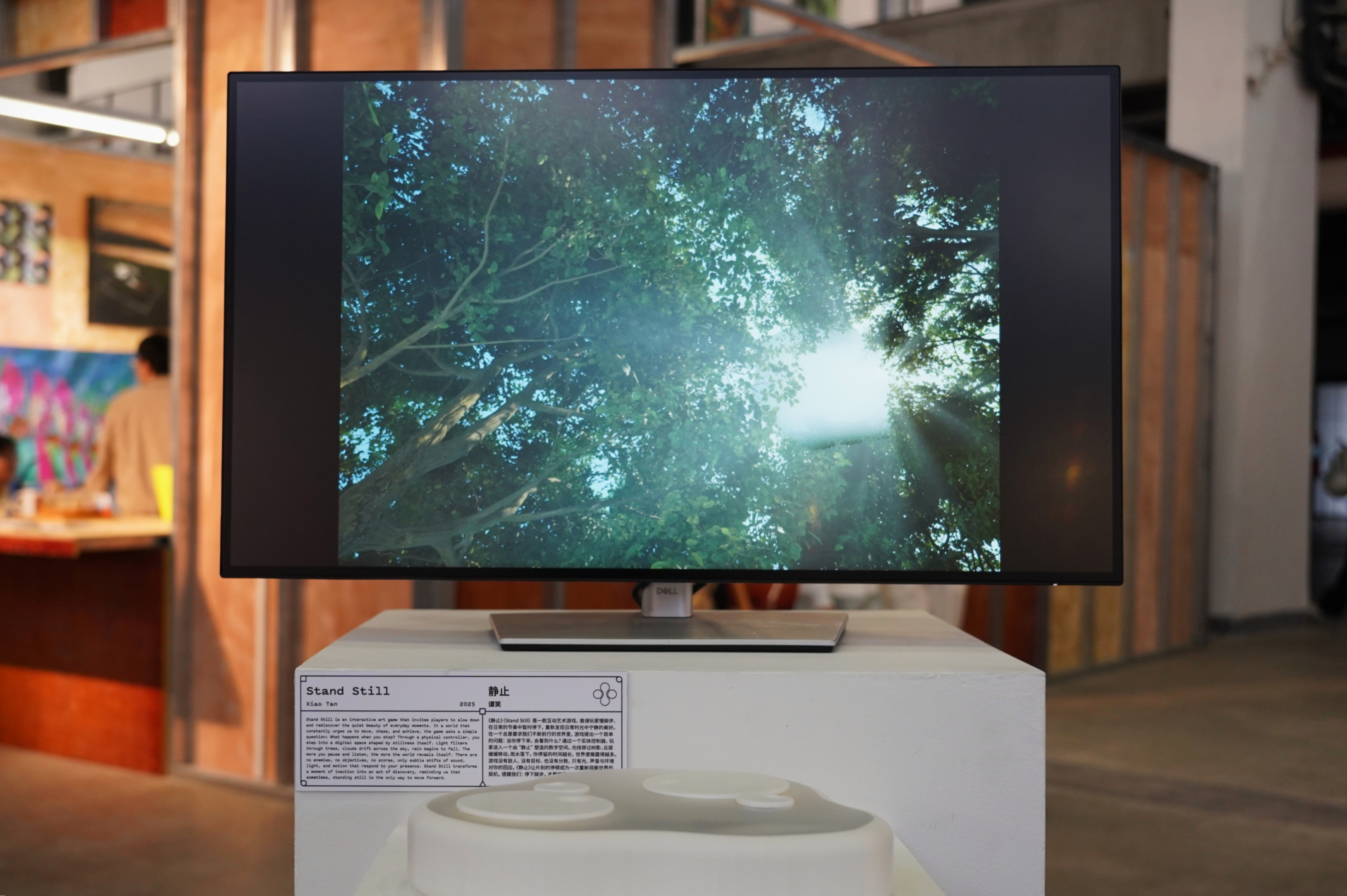 Through a physical controller, you step into a digital space shaped by stillness itself. Light filters through trees, clouds drift across the sky, and rain begins to fall. The more you pause and listen, the more the world reveals itself. There are no enemies, no objectives, no scores, only subtle shifts of sound, light, and motion that respond to your presence. Stand Still transforms a moment of inaction into an act of discovery, reminding us that sometimes, standing still is the only way to move forward.